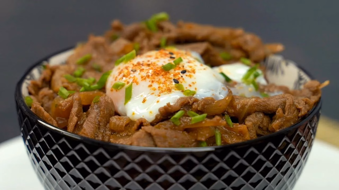 El Gyudon es un plato típico de la gastronomía japonesa que consiste en un tazón de arroz cubierto con carne de res y cebolla cocinados en una deliciosa salsa dulce a base de dashi, salsa de soja y mirin. Es un plato sencillo pero lleno de sabor y muy popular en Japón, especialmente en la zona de Kanto donde se originó.
