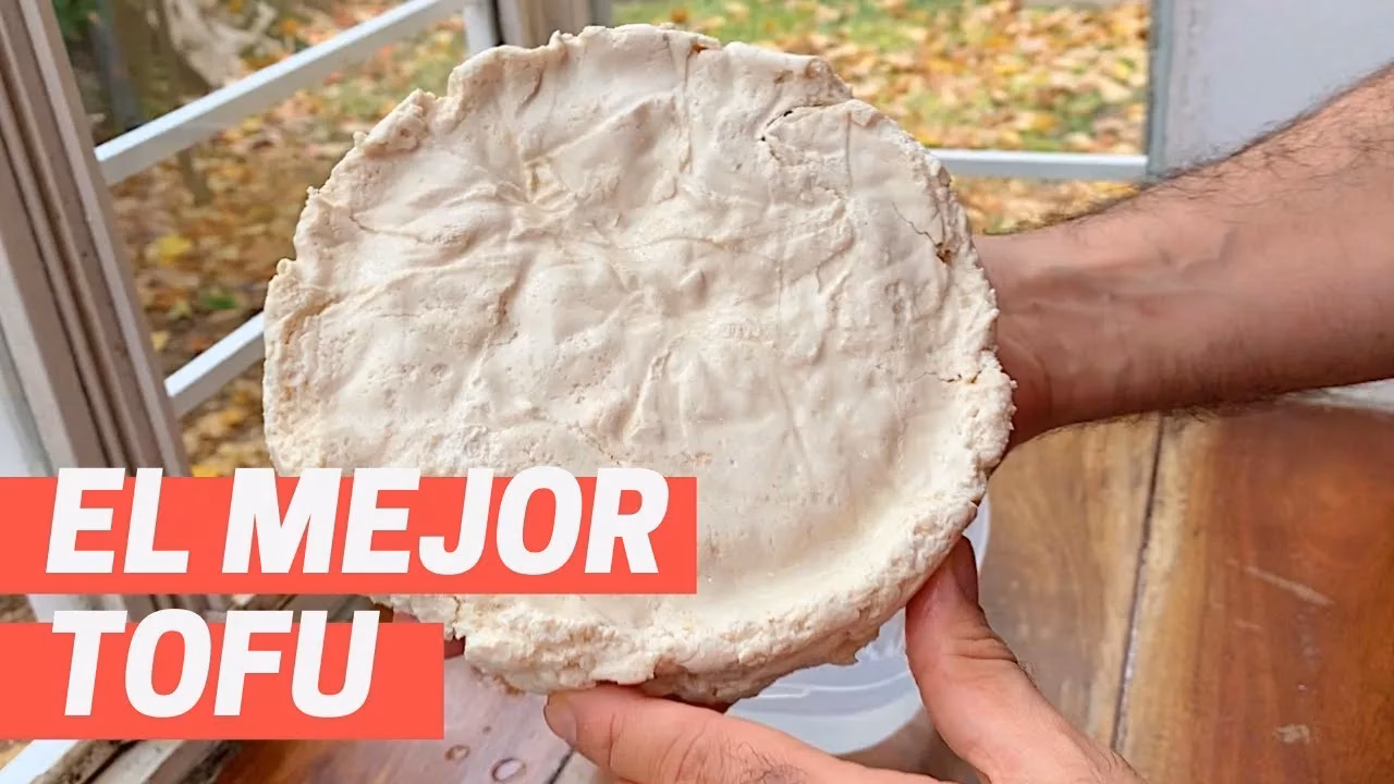Coloca un paño limpio sobre un colador y vierte la mezcla de tofu en él. Exprime suavemente para eliminar el exceso de agua y forma una bola con la mezcla. Coloca un peso encima de la bola para prensarla durante al menos 30 minutos.