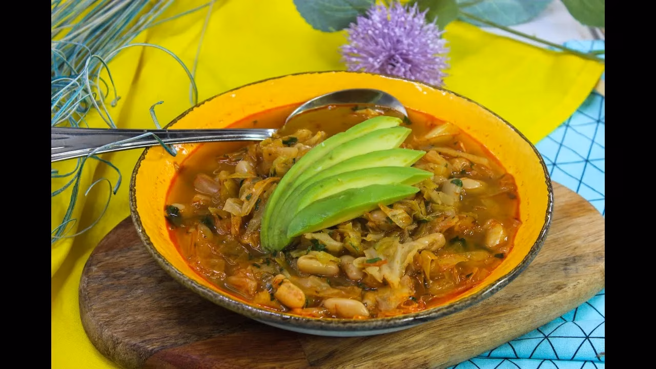 - Agrega la col y la hoja de laurel a la olla. Deja cocinar por unos 20 minutos más hasta que la col esté tierna.
