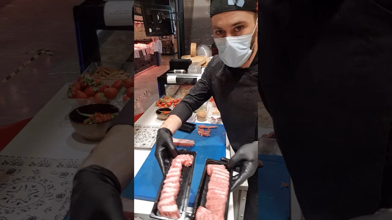 Preparación del toro sashimi