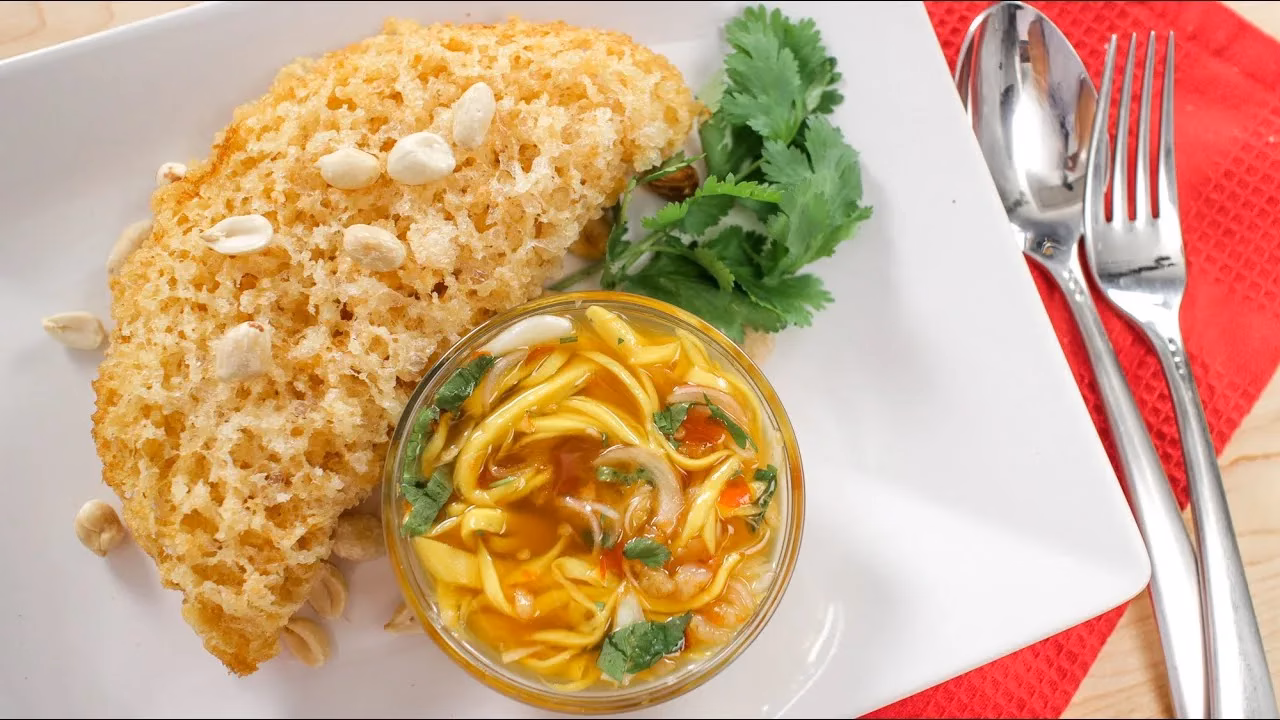 Este plato es originario de la región de Isan, al noreste de Tailandia, y es muy popular en todo el país. La ensalada se prepara con pescado frito desmenuzado, que se mezcla con una variedad de verduras, hierbas y especias, creando una explosión de sabores en cada bocado.