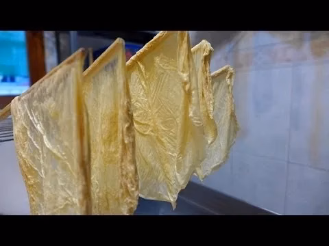 - Lavar cuidadosamente la piel de tofu y cortar en tiras delgadas.